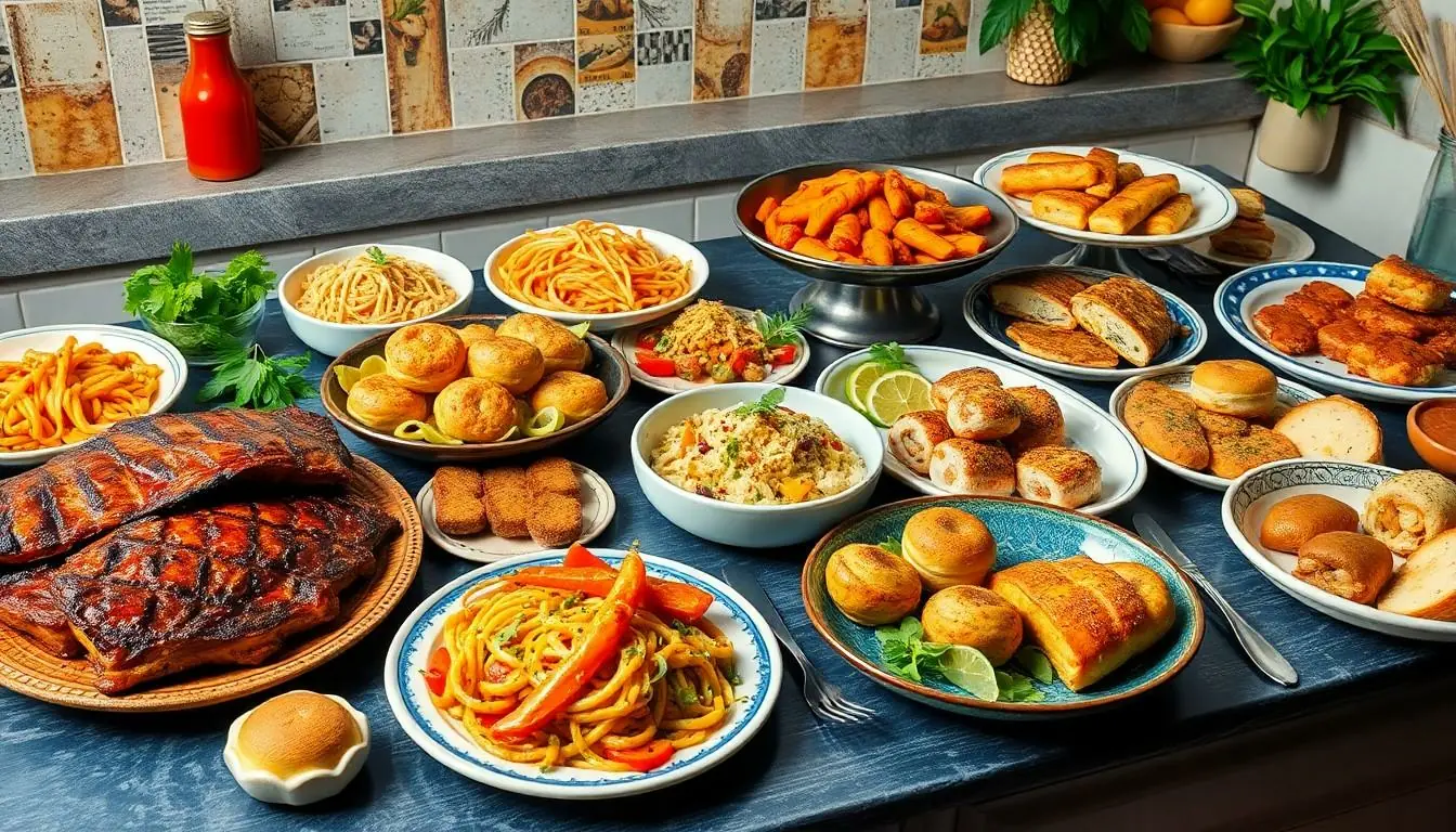 Italian dishes include handmade pasta and fragrant sauces, captivating with rich flavors and textures. Asian options feature sushi, dumplings, and stir-fries, designed to accommodate various dietary preferences. Mediterranean fare showcases grilled meats, fresh salads, and vibrant dips, enticing with refreshing ingredients.